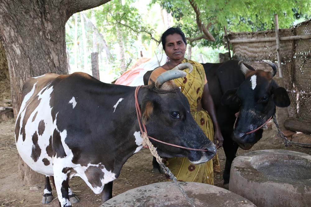 Tamil Nadu specialises in growing crops and raising livestock. We have therefore purchased cows for women who do not wish to be trained in our other programmes. This is particularly suited to older women, often widows, who do not want to be re-trained. In our rural villages widows are some of the most ostracised members of society, subject to wide-ranging abuse from families and blamed for their husbands’ deaths.